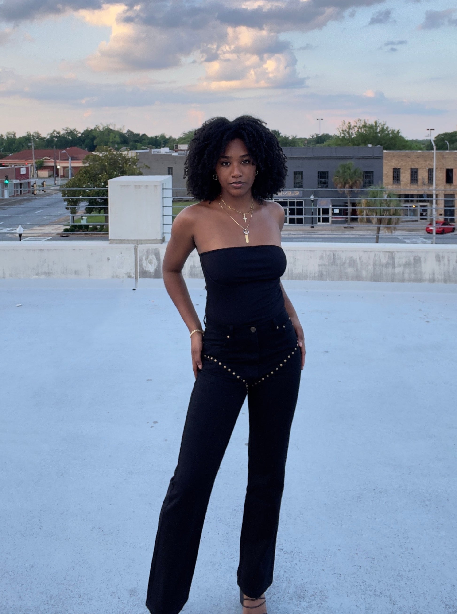 The Arian Jean combine style and comfort for a fashionable look that you can wear all day. Crafted from high-quality, 100% cotton fabric, the jeans feature a unique studded design and a flattering high-rise fit. Put together a cool and confident look with these stylish jeans.